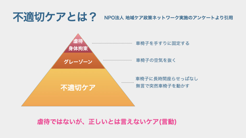 「不適切ケア」 =虐待とまではいかないが、倫理的に正しいとは言えないやつ